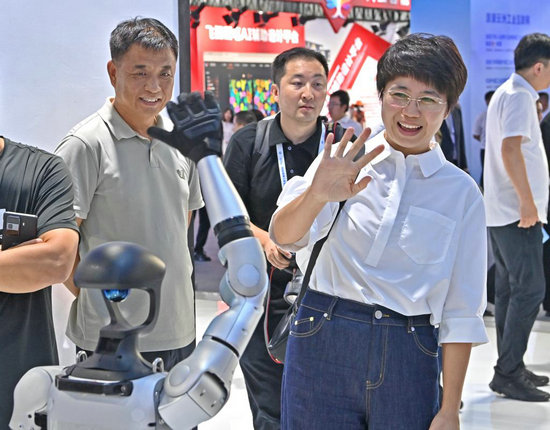 觀眾在2025全球工業互聯網大會現場與機器人互動。新華社記者 周華 攝