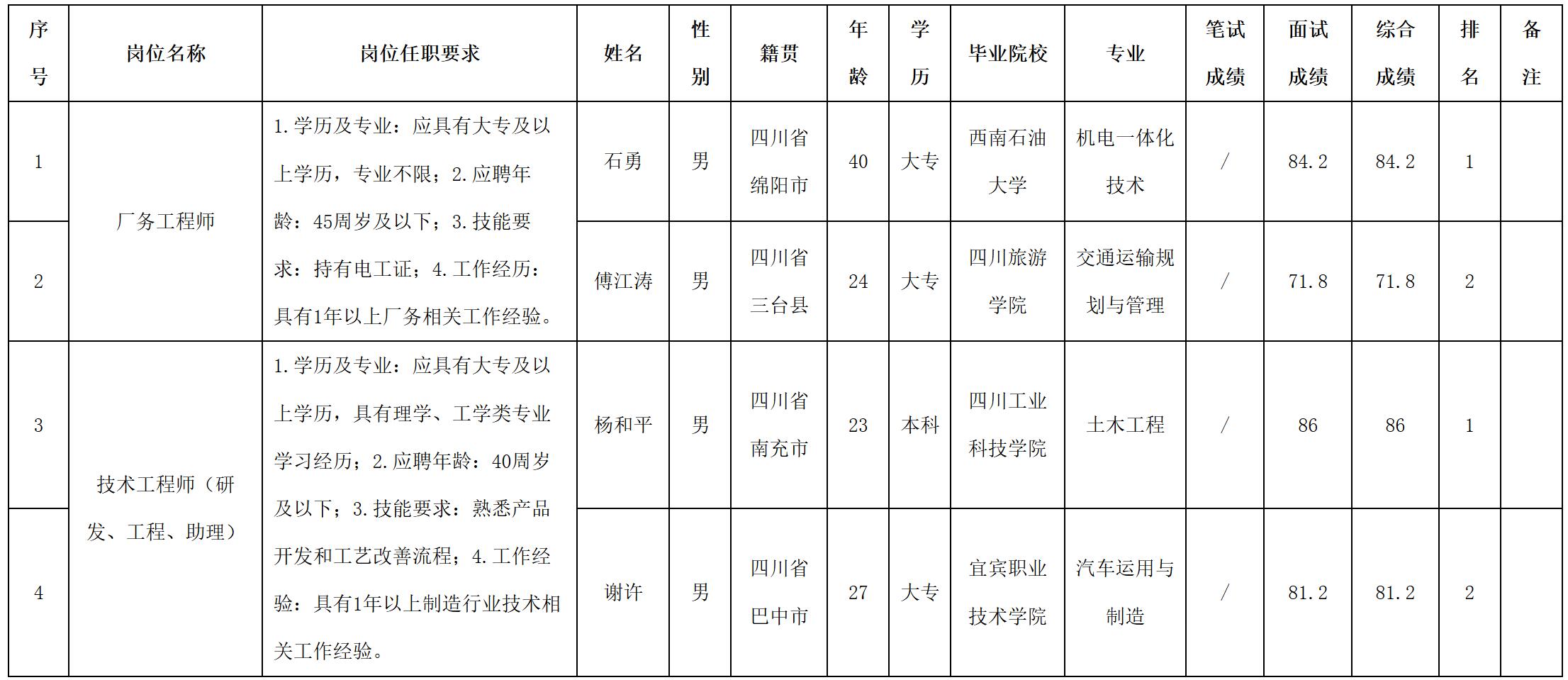 根據四川九州光電子技術有限公司發布的招聘公告及招聘相關規定,經筆試、面試等程序,現將筆試(面試)成績予以公示。