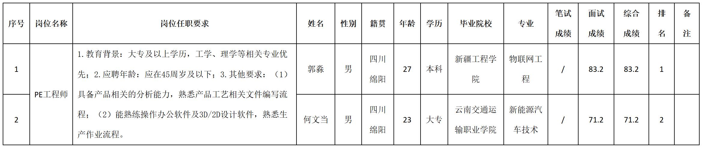 根據四川九州電子科技股份有限公司發布的招聘公告及招聘相關規定,經筆試、面試等程序,現將筆試(面試)成績予以公示。