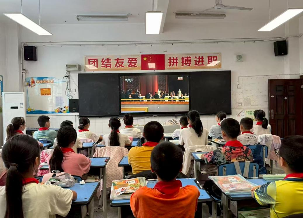 為了銘記歷史,緬懷先烈,弘揚偉大的愛國主義精神,9月3日,游仙區建華小學全體師生及黨員開展了以“看閱兵盛典,燃愛國熱血”為主題的收看紀念中國人民抗日戰爭暨世界反法西斯戰爭勝利80周年大會活動。這一具有重大歷史意義的時刻,在校園里引發了強烈共鳴,激發了全體人員的愛國熱情。