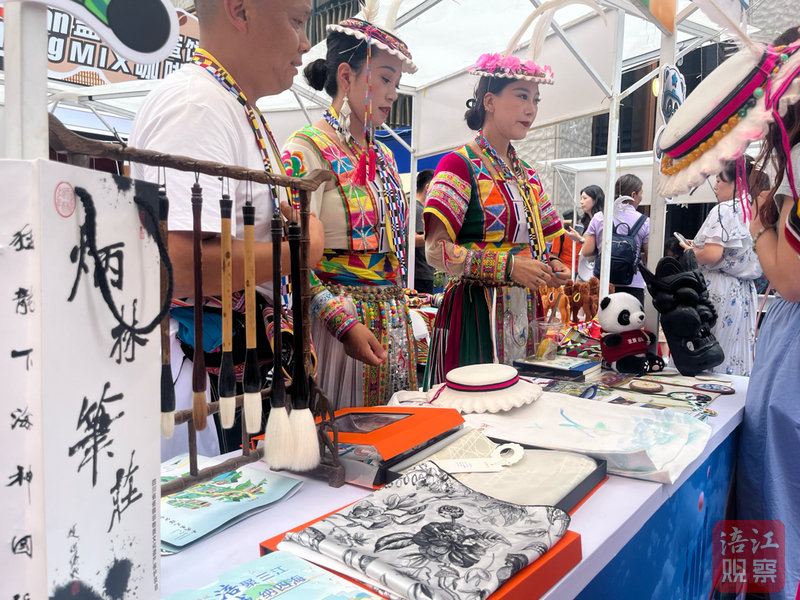 涪城的炳林毛筆訴說悠久歷史,鹽亭的桑芽茶飄散著清香,平武報恩寺的文創產品吸引了不少藝術愛好者駐足品鑒。
