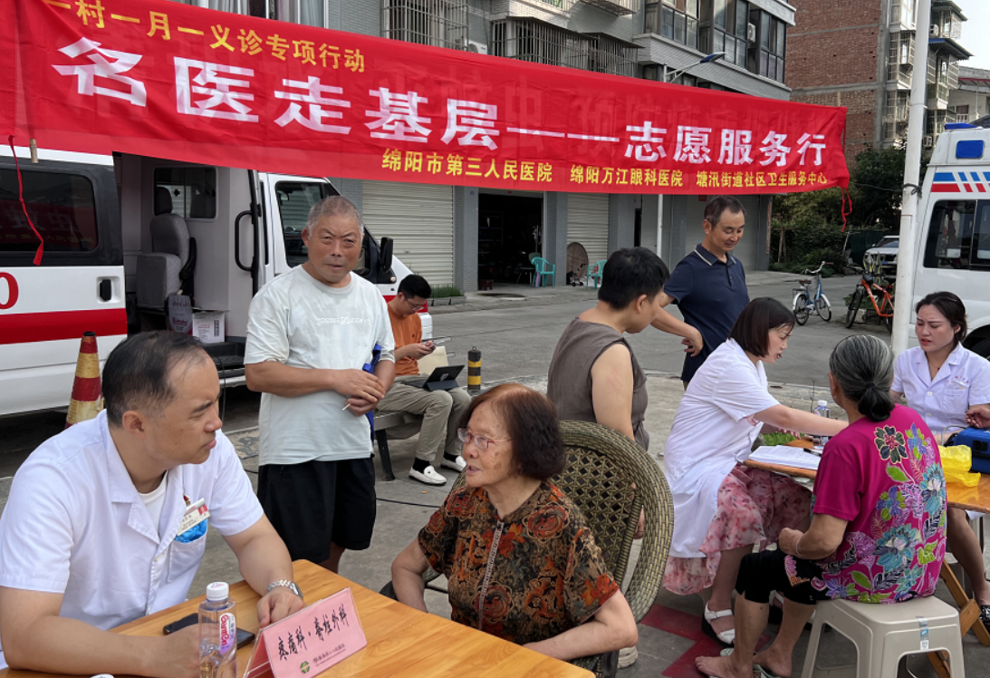 綿陽新聞網(wǎng)訊 為確保通過定期、常態(tài)化的義診服務(wù),切實(shí)解決農(nóng)村群眾“看病難”問題,提升基層健康保障水平。9月15日上午,綿陽經(jīng)開區(qū)塘汛街道社區(qū)衛(wèi)生服務(wù)中心聯(lián)合綿陽市第三人民醫(yī)院、綿陽市萬江眼科醫(yī)院組成的7人義診小隊(duì)走進(jìn)塘汛街道三河社區(qū),開展了“一村一月一義診”及“十百千天府健康壩壩講”系列健康知識傳播活動。