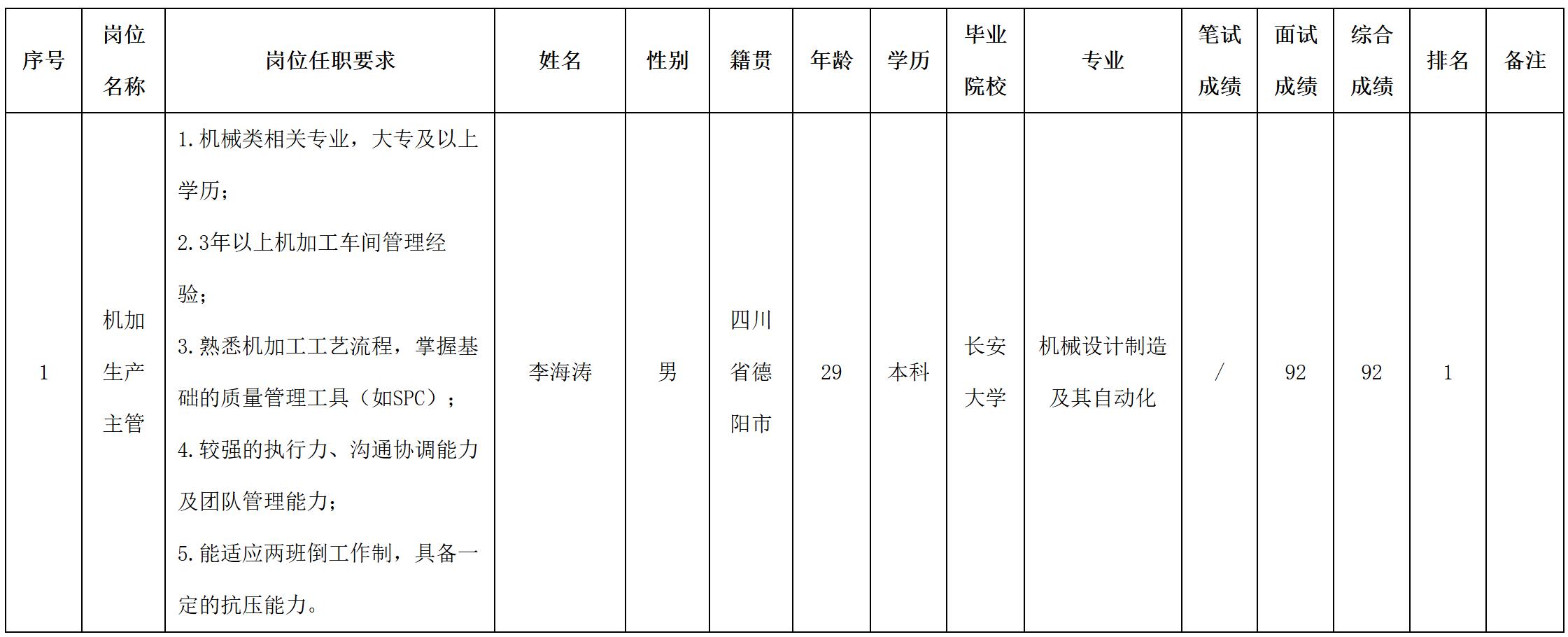 根據四川波鴻實業有限公司發布的招聘公告及招聘相關規定,經面試等程序,現將面試成績予以公示。