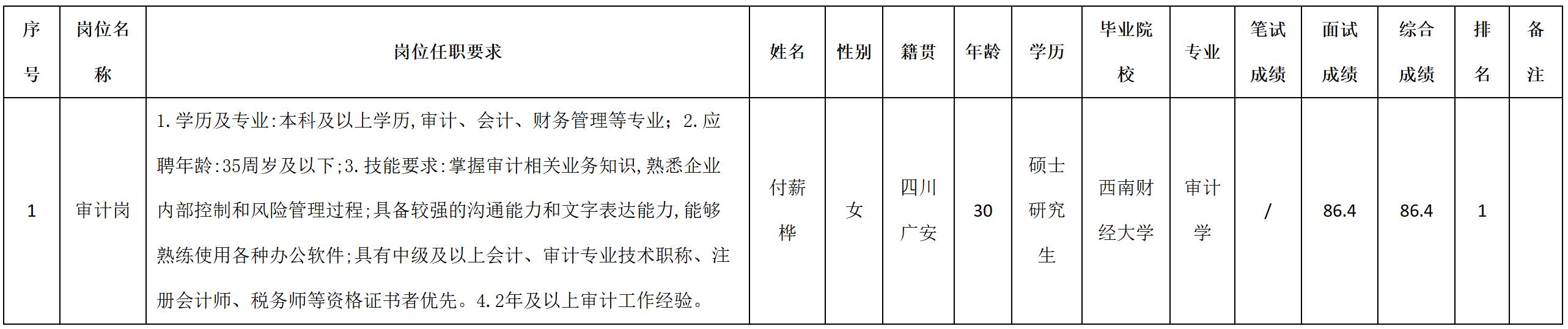 根據(jù)四川九洲電器股份有限公司發(fā)布的招聘公告及招聘相關(guān)規(guī)定,經(jīng)筆試、面試等程序,現(xiàn)將筆試(面試)成績予以公示。