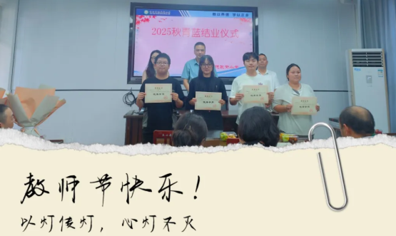 第二項議程是舉行"青藍結對"工程儀式,首先為2022年——2025年度圓滿完成結對學習的師徒頒發結業證書和優秀指導教師榮譽證書。隨后為下一批“青藍結對”教師舉行了拜師儀式。年輕教師們向師傅敬獻鮮花,以花寄情,表達對師傅的尊敬與求教的誠意,傳承育人薪火。