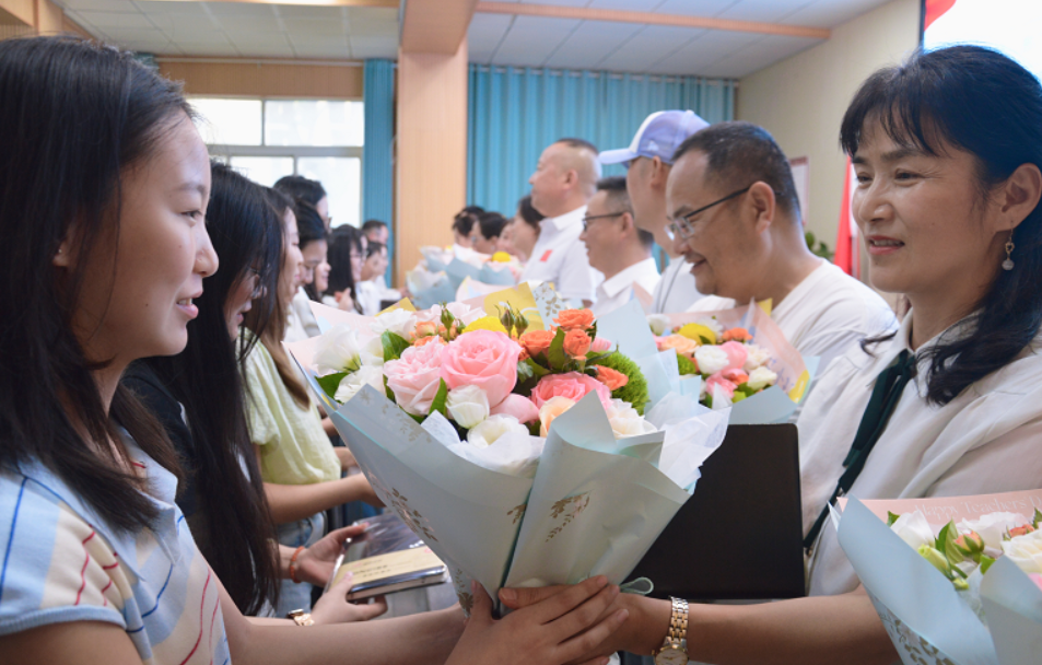 青年教師代表李亞蘋代表全體新教師表態(tài),將始終以“空杯”心態(tài)向老教師虛心求教,傳承文昌中學(xué)“明德礪志,和諧發(fā)展”的優(yōu)良教風(fēng)與老教師愛(ài)崗敬業(yè)的奉獻(xiàn)精神,以青春之力接過(guò)育人薪火,努力成長(zhǎng)為“四有”好教師。