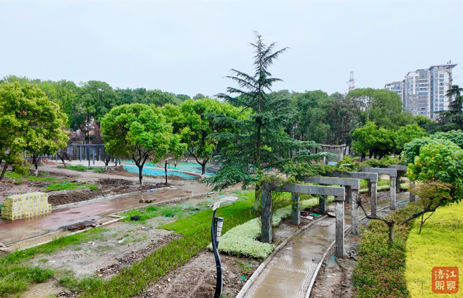 廣場內,工人們正冒雨栽種綠植,施工方介紹,目前整體進度已達80%。綿興路普明大橋城市更新項目執行經理熊鑫介紹:“接下來,我們主要是對建筑物的主體結構施工、室內裝修,以及海綿設施進行建設,完成部分綠植的補植補栽和硬質鋪裝區域的面層施工,力爭10月下旬完工。”