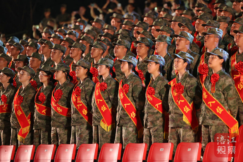 演出結束后,新兵們整齊列隊,高唱軍歌《當那一天來臨》——“準備好了嗎,士兵兄弟們,當那一天真的來臨……”鏗鏘有力的歌聲回蕩在劇場,表達了他們保家衛國、奮勇前進的堅定信念。
