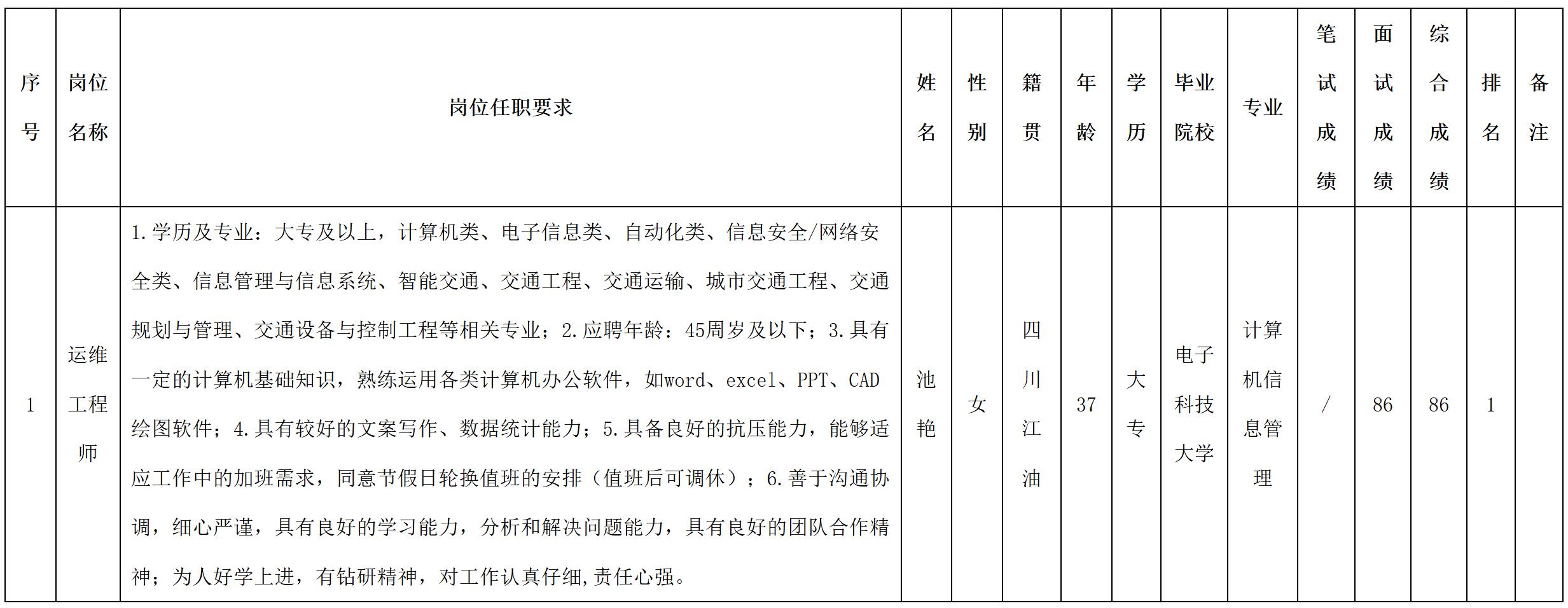 根據四川九洲投資控股集團有限公司軟件與數據智能軍團發布的招聘公告及招聘相關規定,經筆試、面試等程序,現將筆試(面試)成績予以公示。