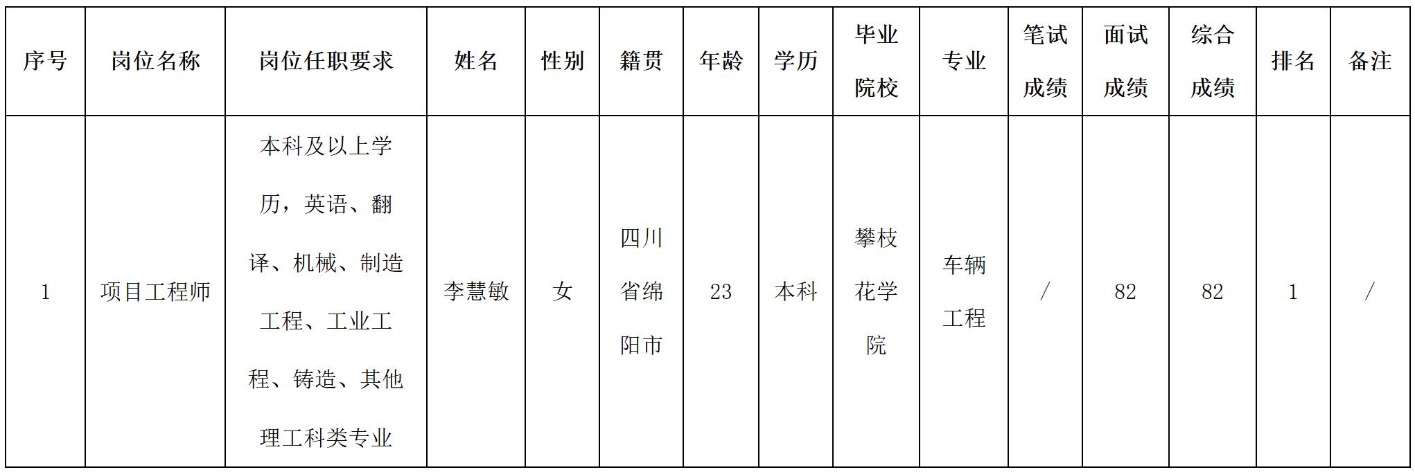 根據四川波鴻實業有限公司發布的招聘公告及招聘相關規定,經面試等程序,現將面試成績予以公示。