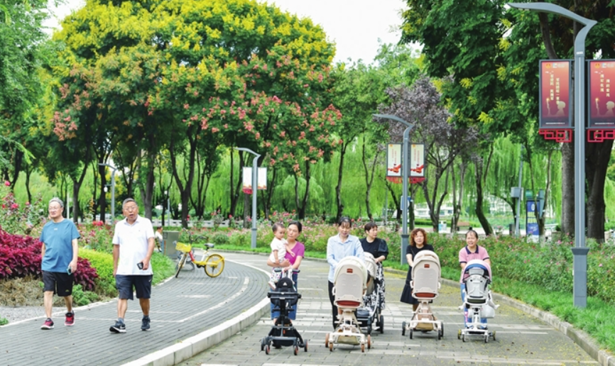 八家堰的粉黛亂子草鋪成一片“粉色海洋”,人民公園游客的茶席上金桂簌簌飄下……這是秋季的綿陽,每縷風里都裹著暗香!三江沿岸、城市公園,斑斕疊翠,樓宇倒映碧波,各種水鳥在灘涂覓食嬉戲,或自在翱翔。人們在城市“綠肺”中愜意地休閑、健身,樂享美好宜居的家園生態環境……