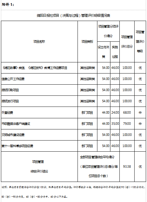 附件1:綿陽日?qǐng)?bào)社項(xiàng)目(決策與過程)管理評(píng)價(jià)明細(xì)情況表