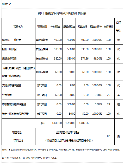 附件2:綿陽日?qǐng)?bào)社項(xiàng)目綜合評(píng)價(jià)結(jié)論明細(xì)情況表