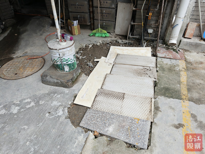 截至9月22日,該施工坑洞已完成臨時回填,表面蓋上了瓷磚。