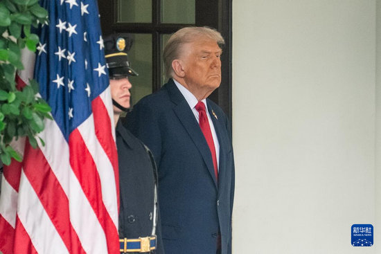 9月25日,在美國首都華盛頓白宮,美國總統特朗普迎候土耳其總統埃爾多安(未在畫面中)。新華社記者 胡友松 攝