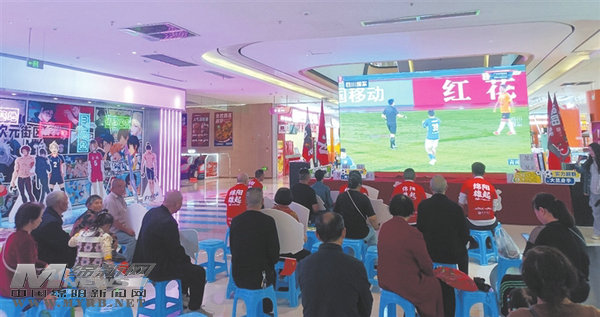 球迷聚在安州商超匯星廣場(chǎng)的大屏前觀賽