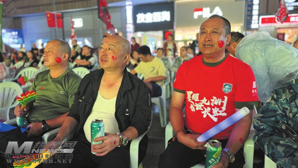 綿州記憶興達(dá)廣場(chǎng)設(shè)置的超大屏幕吸引了近百球迷觀賽