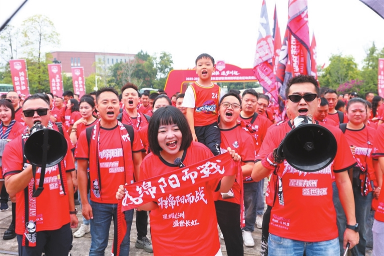 儀式尚未開始,黨校內已被熱烈氛圍籠罩。球迷們難掩激動,臉上滿是期待與興奮。“從聯賽官宣起就盼著這一天,客場再遠也要去!”身著綿陽隊紅色助威服的球迷王磊舉起印有“綿陽雄起”的頭巾,聲音里滿是歡欣,“咱們球迷就是球隊的‘第十二人’,要讓隊員們在客場也能聽到家鄉的聲音。”