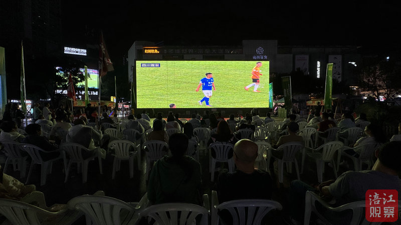 與此同時,在安州人氣商超匯星廣場,川超賽況通過戶外大屏實時直播。商場精心布置了觀賽區域,擺放著舒適的座椅,還為前來觀賽的顧客準備了小零食和飲料。
