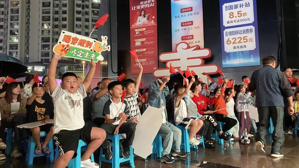 終場哨響。綿陽的大街小巷里,意猶未盡的人群并未立即散去。商場大屏前,球迷們繼續討論著精彩瞬間;餐廳內,碰杯聲此起彼伏;便利店門口,有人買上幾串關東煮,繼續回味比賽。