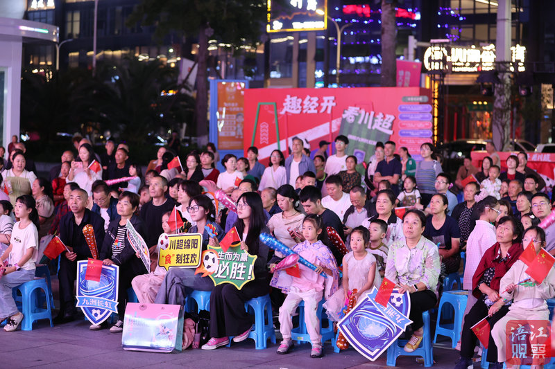 “趣經開,看川超,星耀九洲,盛世長虹!”在綿陽經開區一號橋旁的城南vv街舉辦的開街活動中,將四川城市足球聯賽轉播作為開街活動的重要節目,經開區群眾現場觀看比賽,為綿陽九洲長虹隊瘋狂打call。