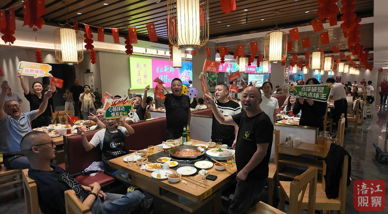 隨著賽事開場,沸騰的火鍋與綠茵場上的激情同步點燃。食客們不時停下手中涮燙的毛肚、鴨腸、牛肉,目光齊刷刷鎖定屏幕。