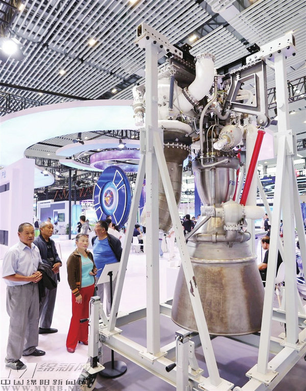 9月28日,在第十三屆中國(綿陽)科博會上展出的液氧甲烷火箭發動機。