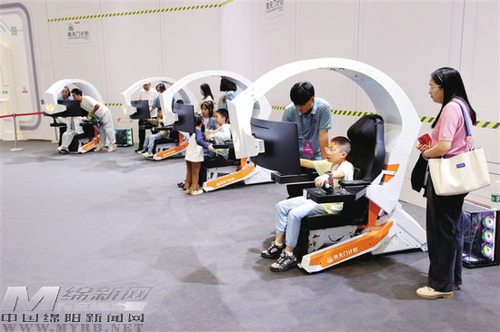 9月28日,在第十三屆中國(綿陽)科博會“南天門計劃”主題展區,觀眾沉浸式體驗科幻裝備的魅力。