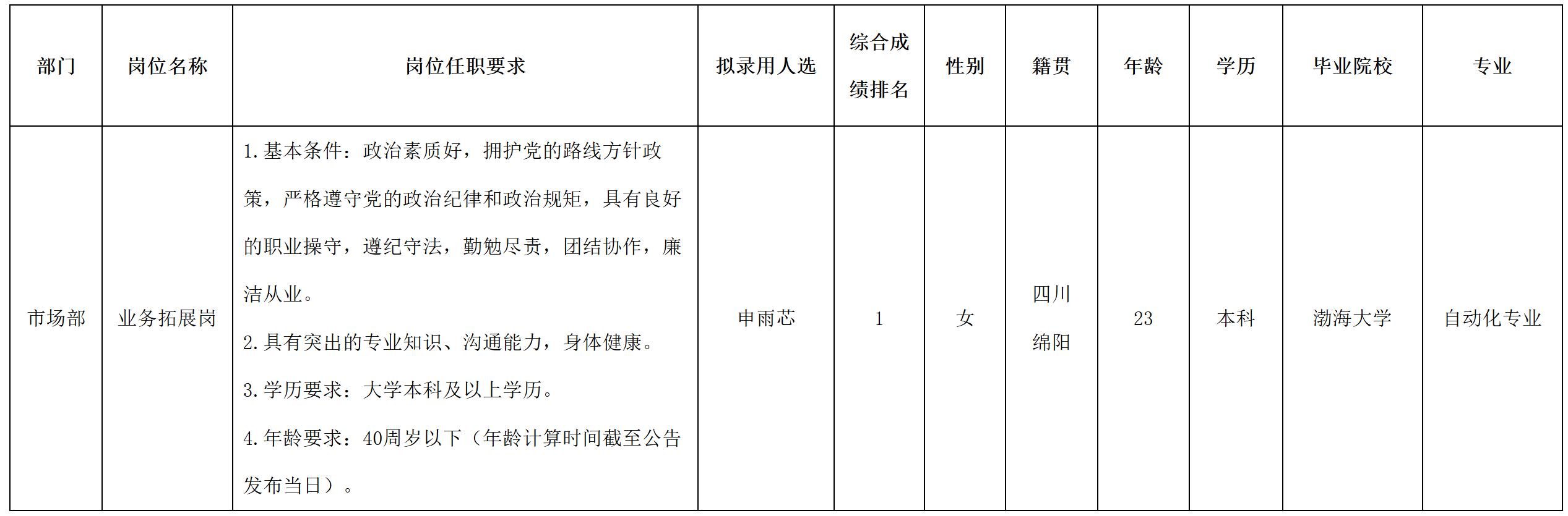 根據綿陽市建設工程質量檢測中心有限責任公司發布的招聘公告及招聘相關規定,經筆試、面試、背景調查、體檢等程序,擬錄用申雨芯同志到綿陽市建設工程質量檢測中心有限責任公司工作,現予以公示,具體情況如下:
