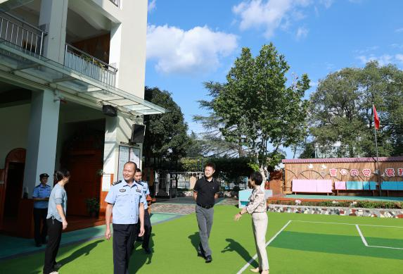 9月23日上午,四川省校園安全交叉檢查組蒞臨綿陽市開元實驗幼兒園,開展了以“聚焦安全交叉檢查 筑牢校園安全屏障”為主題的2025年秋校園安全督導(dǎo)檢查工作。該園黨支部書記、園長劉朝霞等相關(guān)人員現(xiàn)場匯報工作。游仙區(qū)教體局安全股、區(qū)公安局、涪江派出所等相關(guān)領(lǐng)導(dǎo)陪同檢查。
