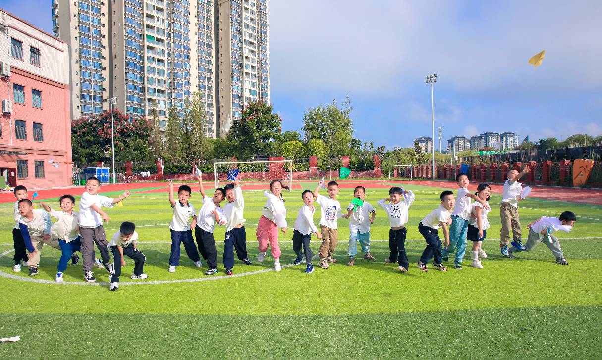 “怎樣調整機翼能飛得更遠?”“減輕機身重量會不會有幫助?”圍繞這一核心問題,孩子們在制作中反復試飛、反復探究,每一次修改、每一次升空,都是對科學原理的直觀實踐。隨著一聲整齊的“發射!”,五顏六色的紙飛機騰空而起,宛如靈動的“科創精靈”掠過校園上空。
