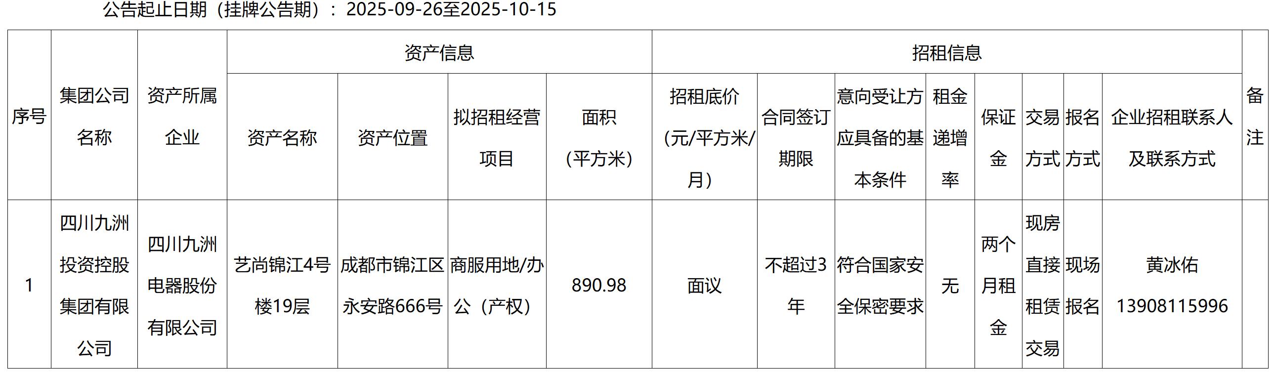 四川九洲千城商業管理有限公司成都項目部藝尚錦江4#樓房屋出租公告