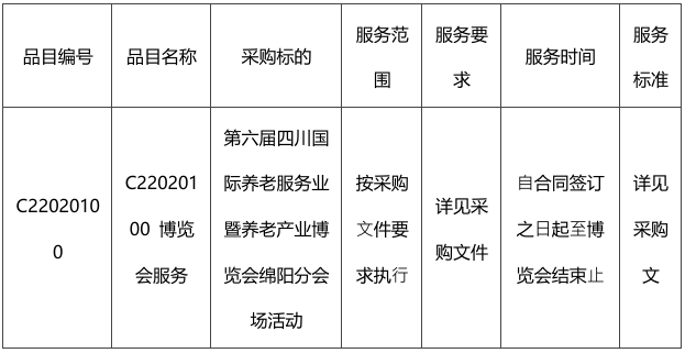 二、項目名稱:第六屆四川國際養老服務業暨養老產業博覽會綿陽分會場活動