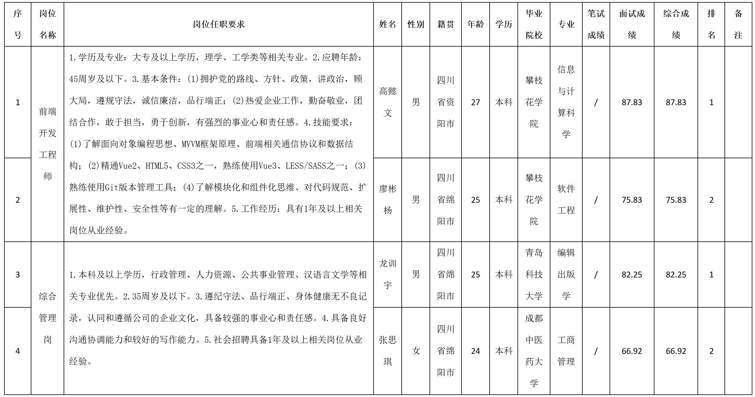 根據四川九強通信科技有限公司發布的招聘公告及招聘相關規定,現將測試成績予以公示。
