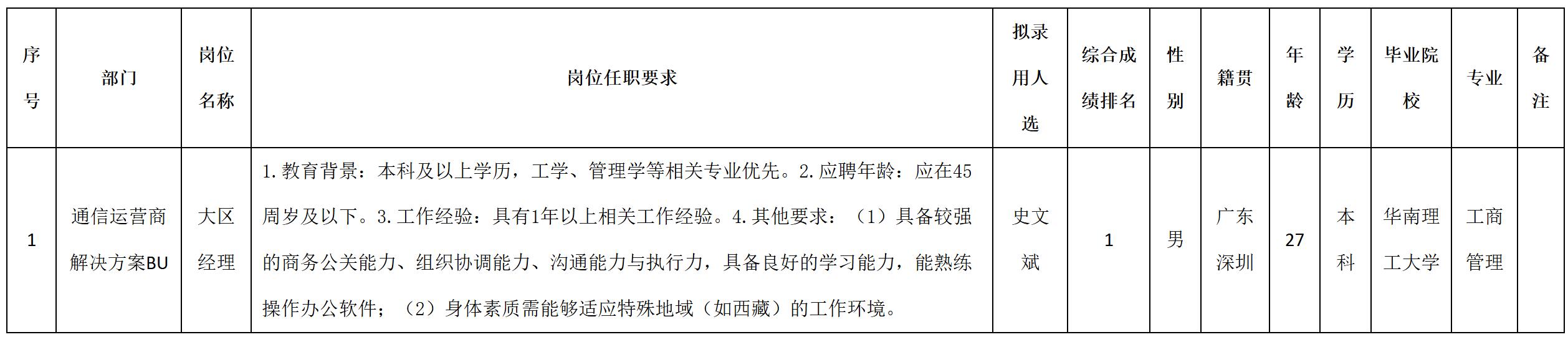 根據四川九州電子科技股份有限公司發(fā)布的招聘公告及招聘相關規(guī)定,經測試、考察、體檢等程序,擬錄用史文斌同志到四川九州電子科技股份有限公司工作,現予以公示,具體情況如下: