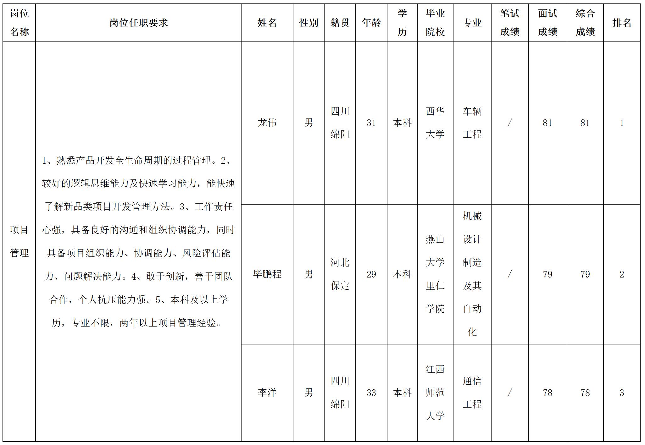 根據(jù)四川華豐科技股份有限公司發(fā)布的招聘公告及招聘相關(guān)規(guī)定,經(jīng)面試等程序,現(xiàn)將面試成績予以公示。
