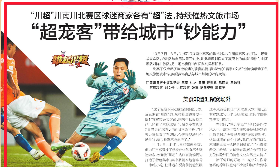 10月10日,《四川日報》以《“川超”川南川北賽區球迷商家各有“超”法,持續催熱文旅市場 “超寵客”帶給城市“鈔能力”》為題,報道了“川超”期間 ,足球以獨特的魅力連接起四川各地的城市消費潛力與活力。其中..[