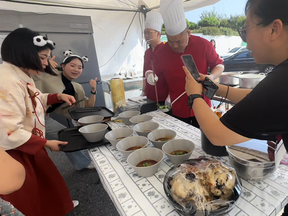 9月27日,在韓國啟幕的“第30屆國際南道飲食文化盛會”上,四川綿陽美食團受邀參加,川味冒菜、擔擔面、綿陽米粉、安州清風雞......各個經典的川菜菜品原材料遠渡重洋,正宗川味香飄韓國,引得眾多國際友人贊嘆不已。[