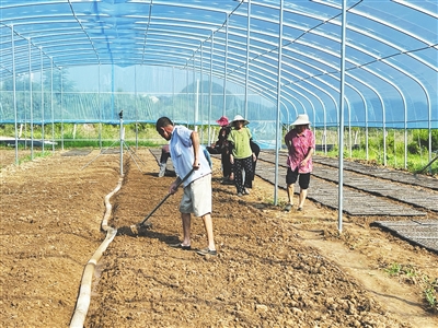 近日,鹽亭縣玉龍鎮梓江村蔬菜基地大棚內,村民們有序裝填有機肥基質、平整苗床。一壟壟整齊的苗床上,嫩綠的菜苗在恒溫恒濕環境中舒展身姿,一派生機盎然。 [