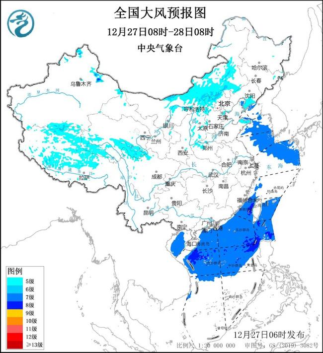 中央氣象臺12月27日06時繼續發布大風藍色預警: 預計,12月27日08時至28日08時,內蒙古中部、寧夏、山西、河北北部、北京西部、天津、新疆沿天山地區、青海南部、西藏中北部、遼東半島、山東半島等地部分地區有5~6級風、陣風7~8級,其中,河北北部、西藏中北部等地局地陣風9..[